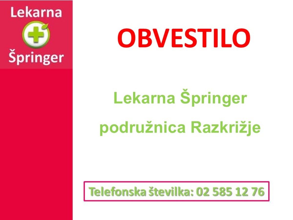 Delovni čas Lekarne Špringer - podružnice Razkrižje, julija in avgusta 2025